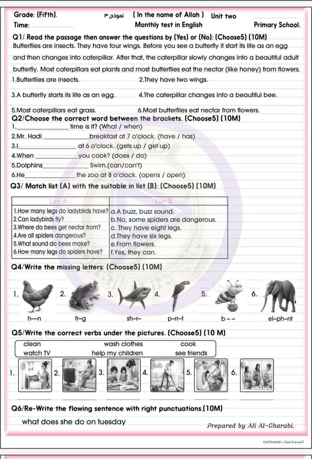 نماذج اسئلة انكليزي للصف الخامس الابتدائي الاستاذ علي داود