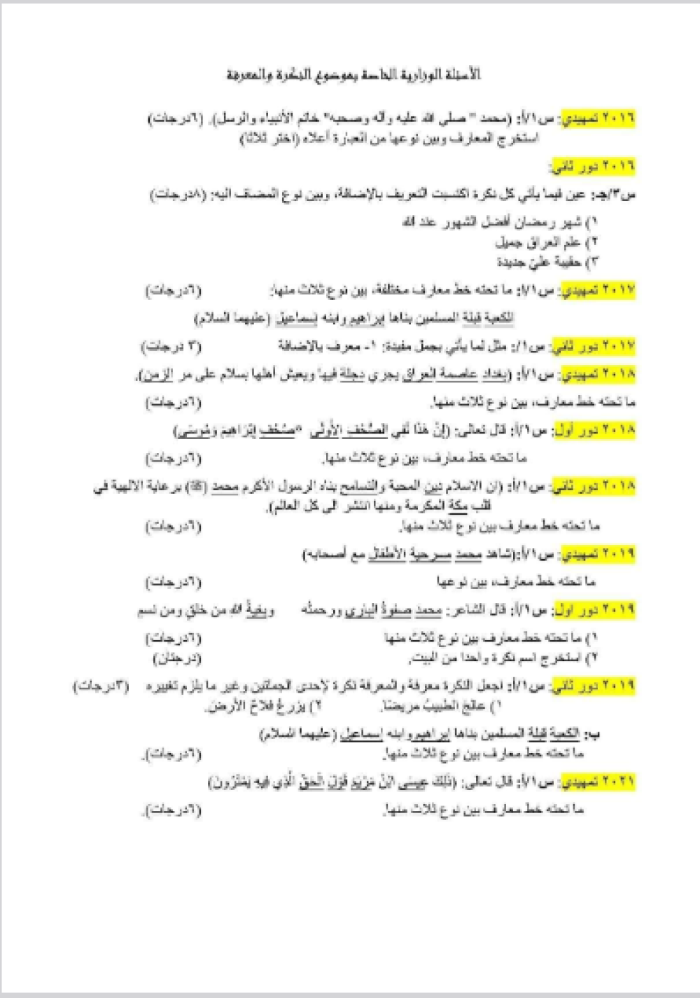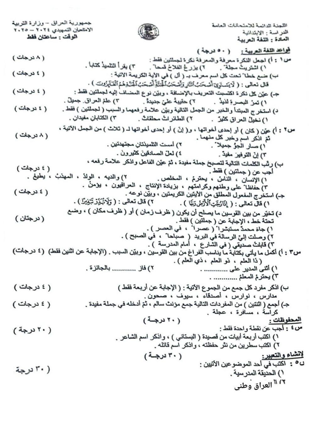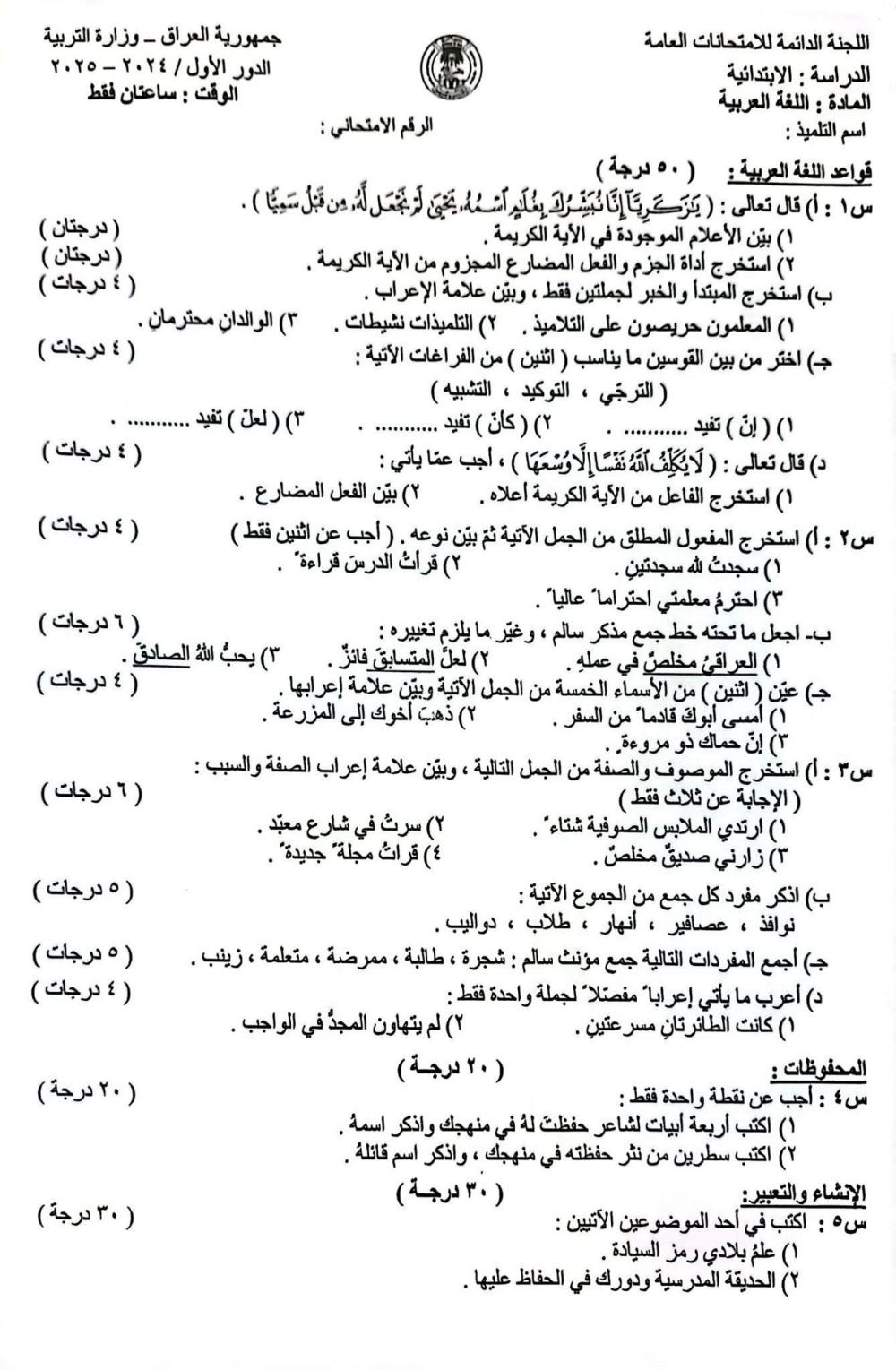 منذ شهراسئلة العربي التمهيدي السادس الابتدائي 2025