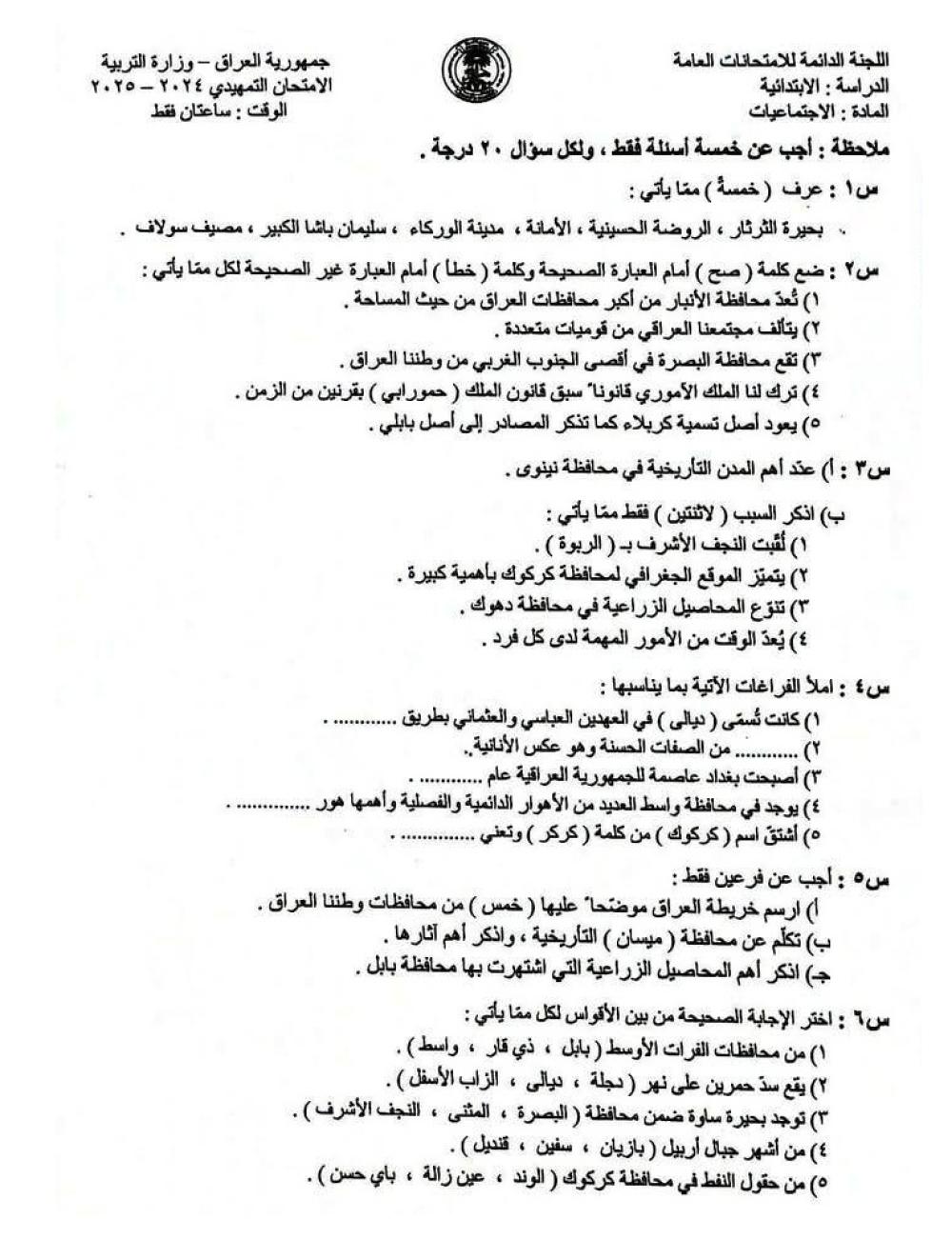 منذ شهراسئلة الاجتماعيات التمهيدي السادس الابتدائي 2025