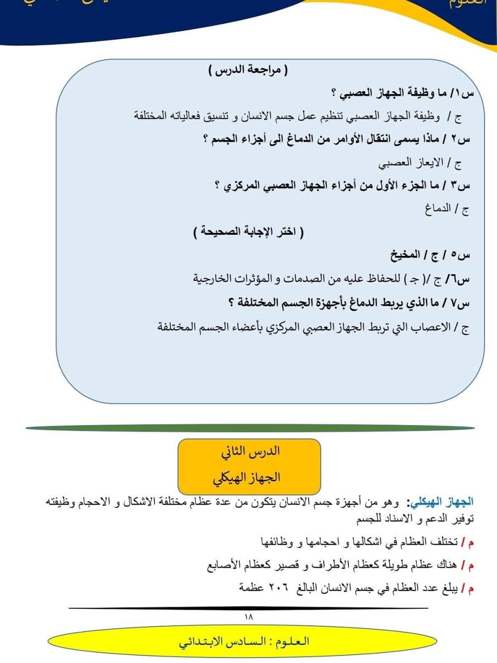 منذ شهرملخص الجهاز الهيكلي والعظلي للصف السادس الابتدائي