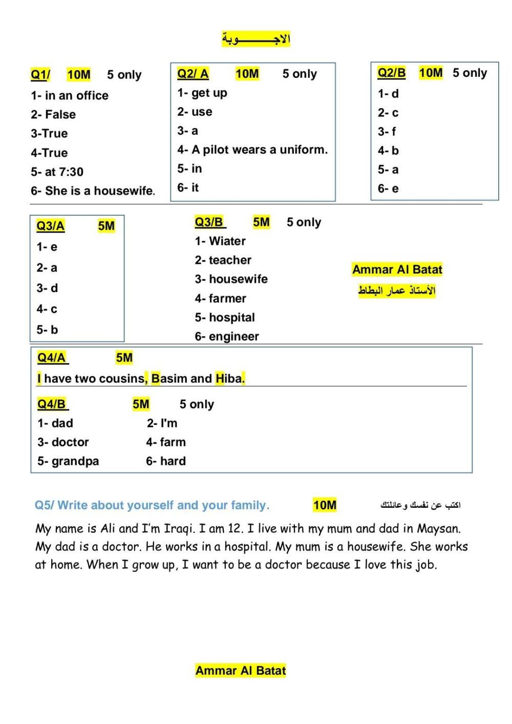 اسئلة انكليزي الوحدة الاولى_ الاستاذ عمار البطاط