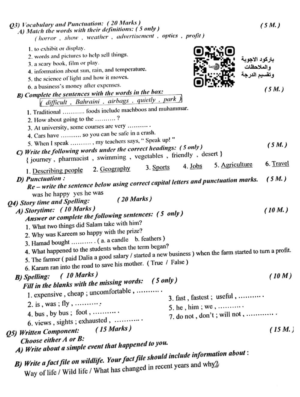 اسئلة الانكليزي الوزارية للصف الثالث المتوسط 2025