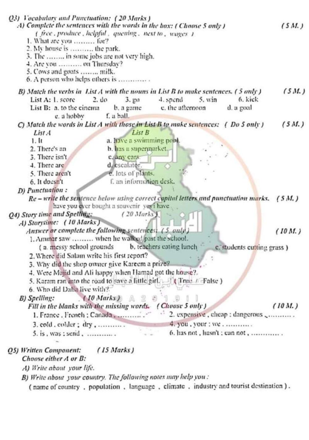 اسئلة الانكليزي الوزارية للصف الثالث المتوسط 2024