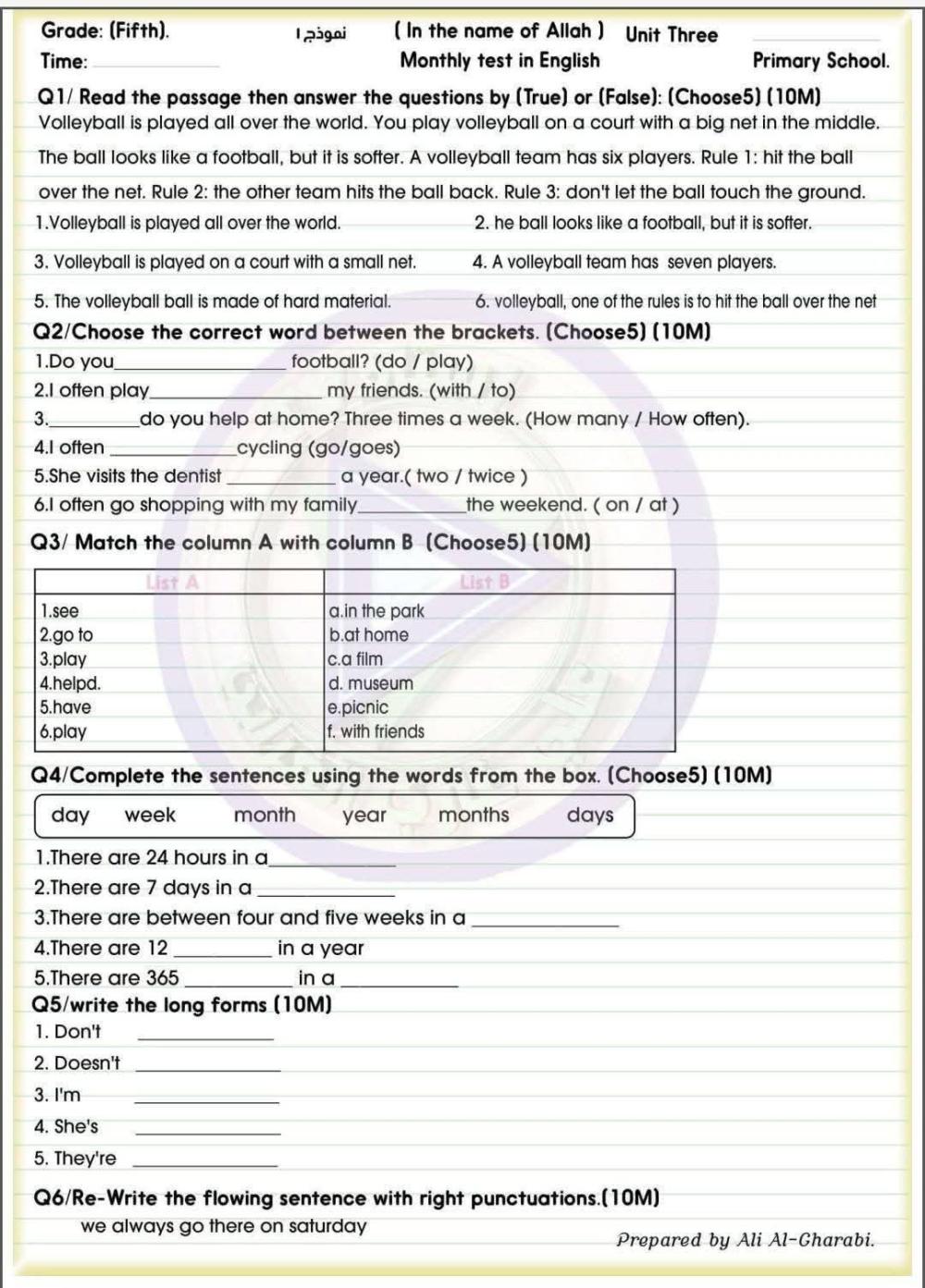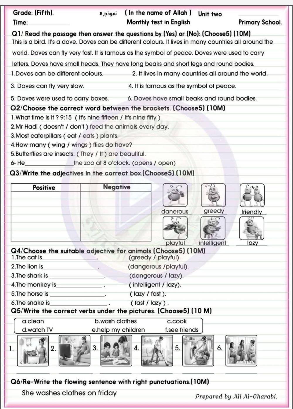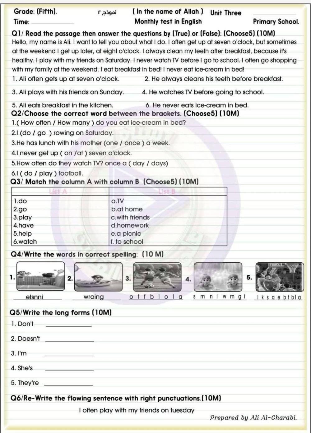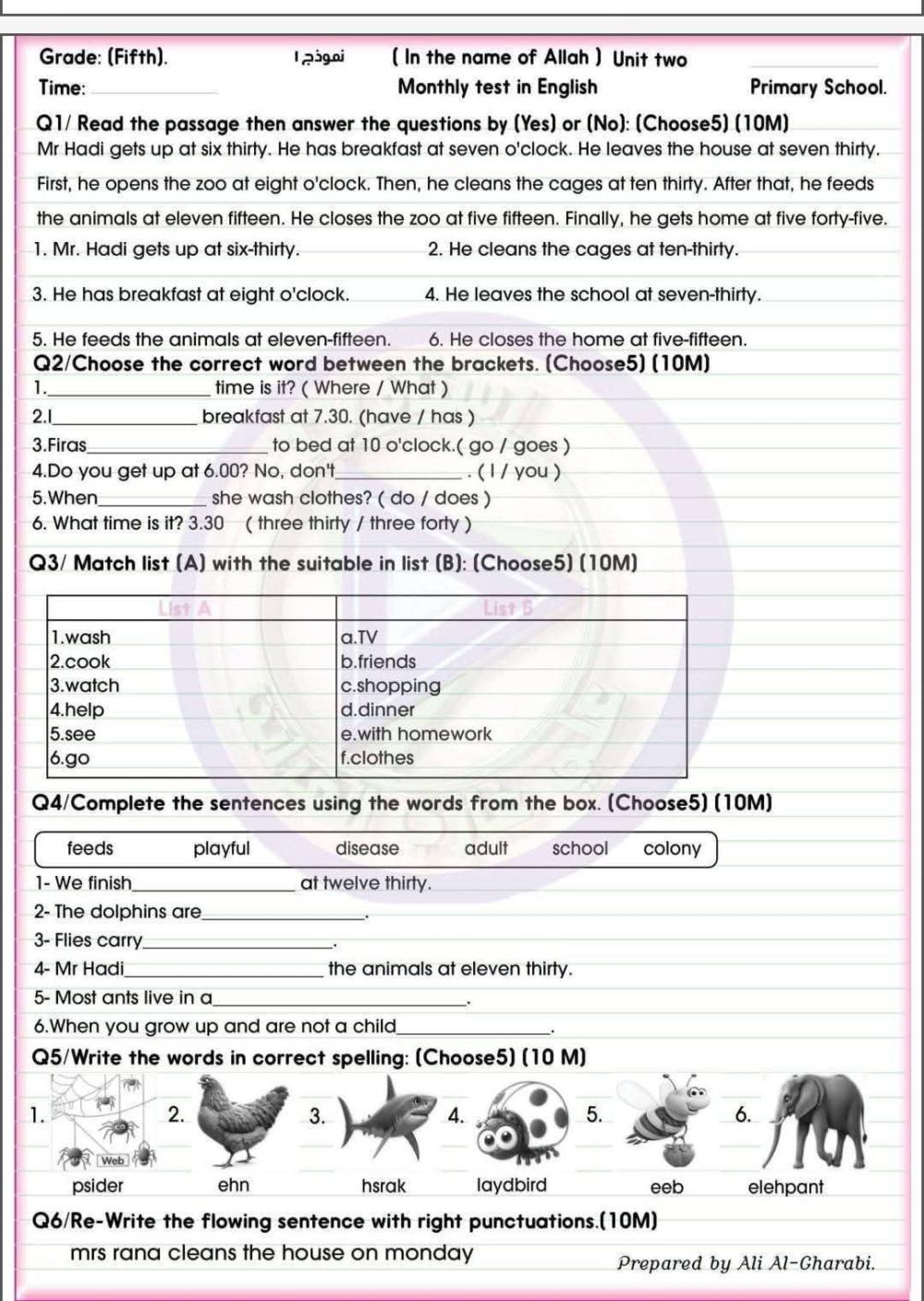 نماذج اسئلة انكليزي للصف الخامس الابتدائي الاستاذ علي داود