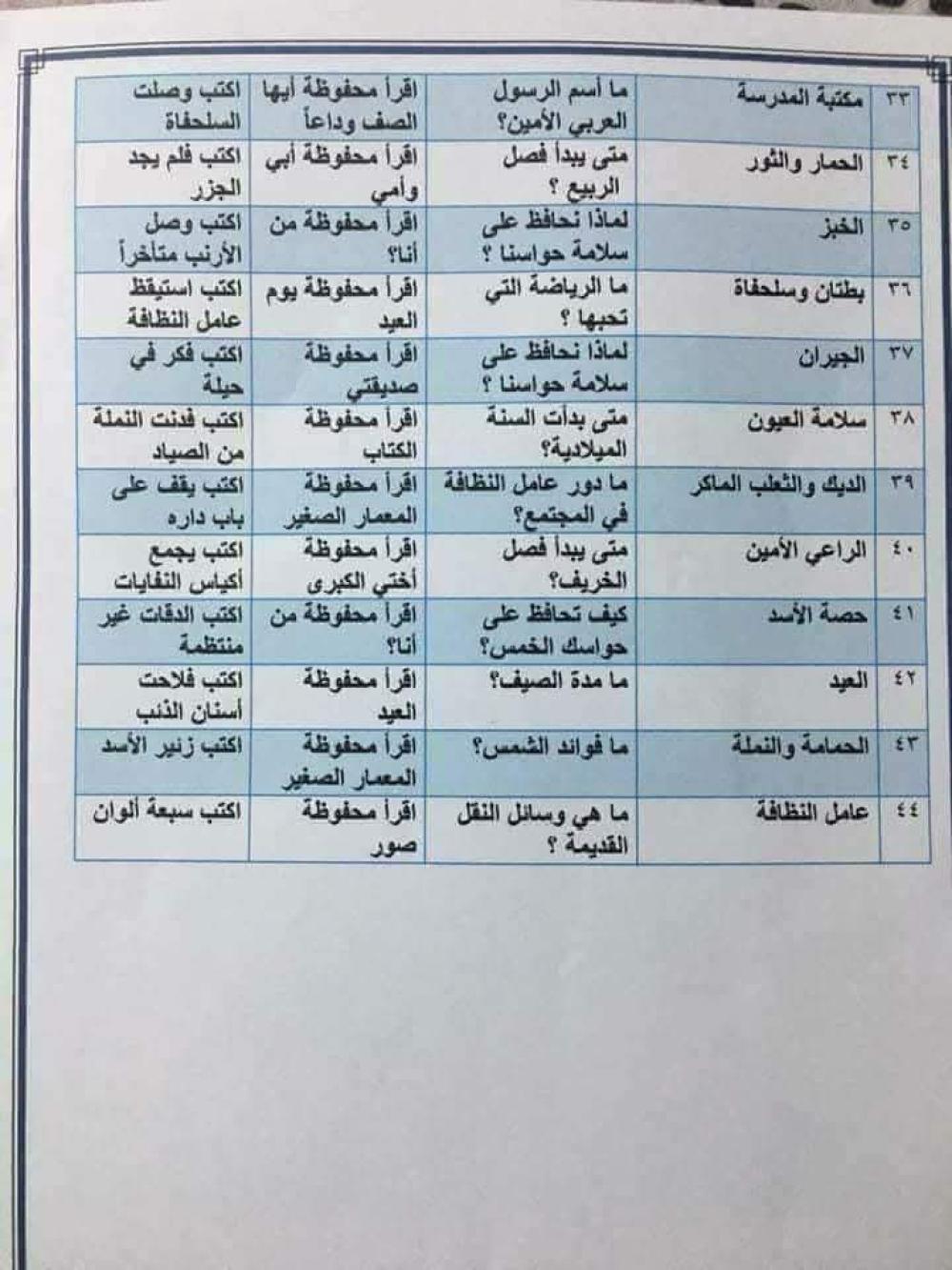 اسئلة لغة عربية للصف الثالث الابتدائي