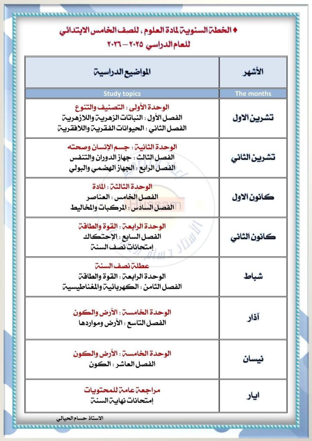 منذ شهرالخطة السنوية لمادة العلوم للصف الخامس الابتدائي