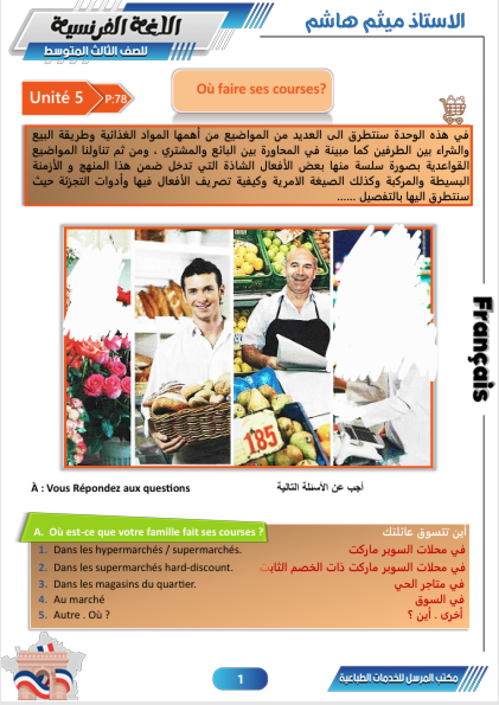 ملزمة فرنسي ثالث متوسط المنهج الجديد الاستاذ ميثم هاشم